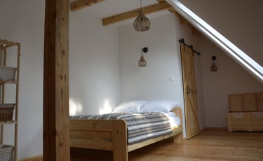 Czeka na Ciebie pięć pokoi z prywatnymi łazienkami. W każdym wygodne łóżka, świeża pościel i ręczniki. Jest też Wi-Fi ale bywa kapryśna bo jesteśmy blisko granicy.